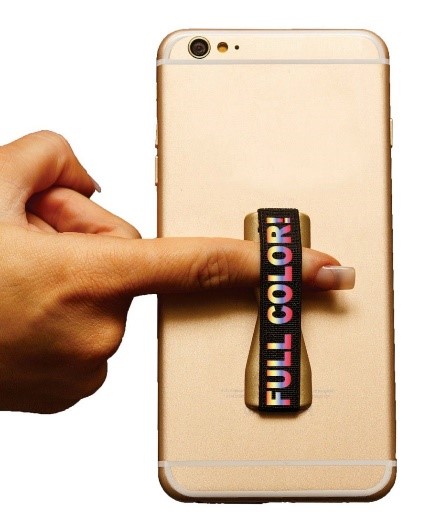 This smartphone grip attaches to any phone or case to give secure one-handed control and extended thumb reach. The grip features peel-n-stick, removable, no-residue adhesive. The grip is also full-color, so you can get creative with your branding!
